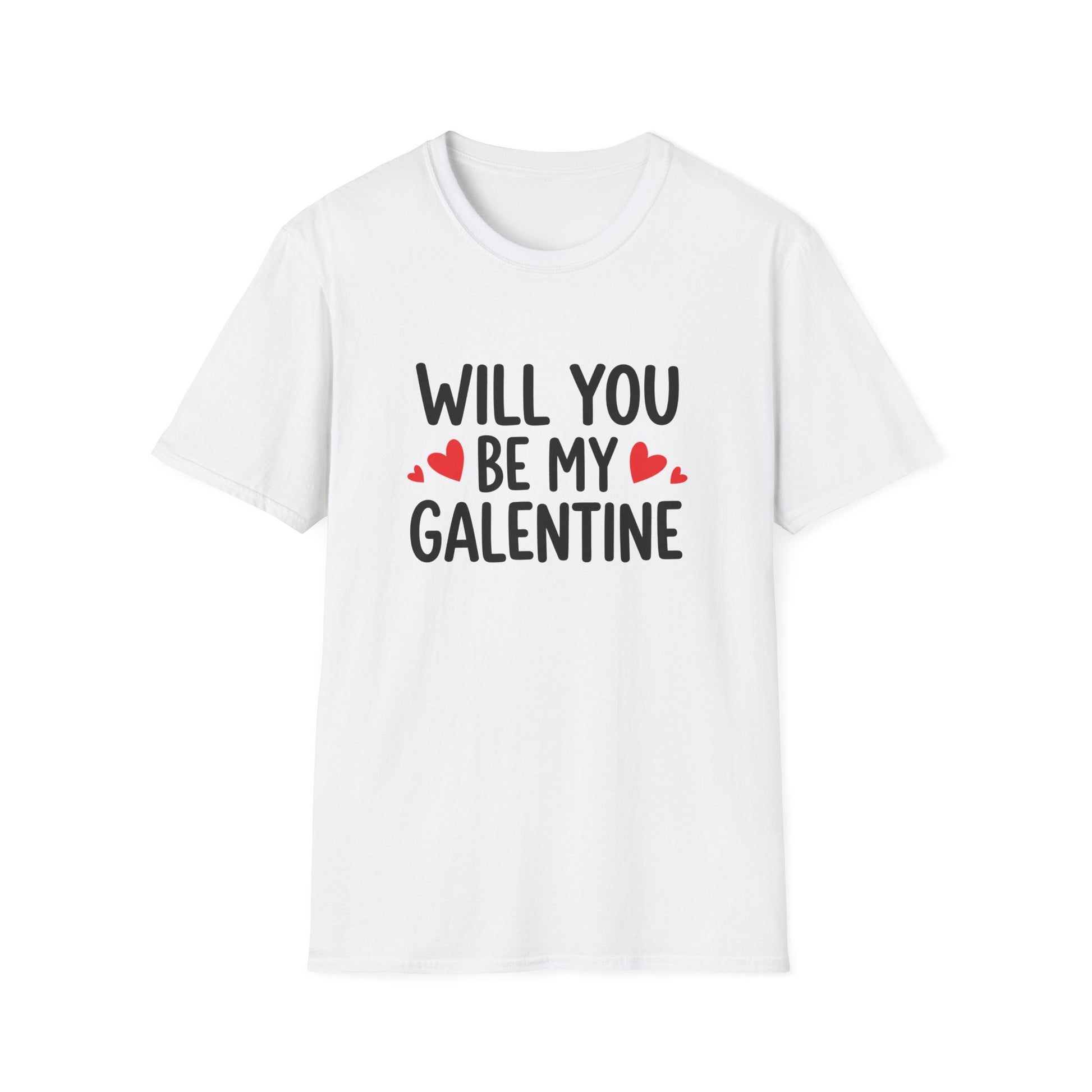 A soft, lightweight tee that speaks straight from the heart: “Will you be my Galentine” in playful hand-lettering with little red hearts. The clean white background keeps the message bright and wearable, while the classic crew cut and relaxed fit let it slip into everyday life — brunch runs, card-making parties, or a cozy night in with close friends. The tone is warm and personal: this shirt isn't about grand gestures, it's about the small, honest moments of friendship — handing over a card, sharing a toast, or showing up with chocolate and a silly playlist.